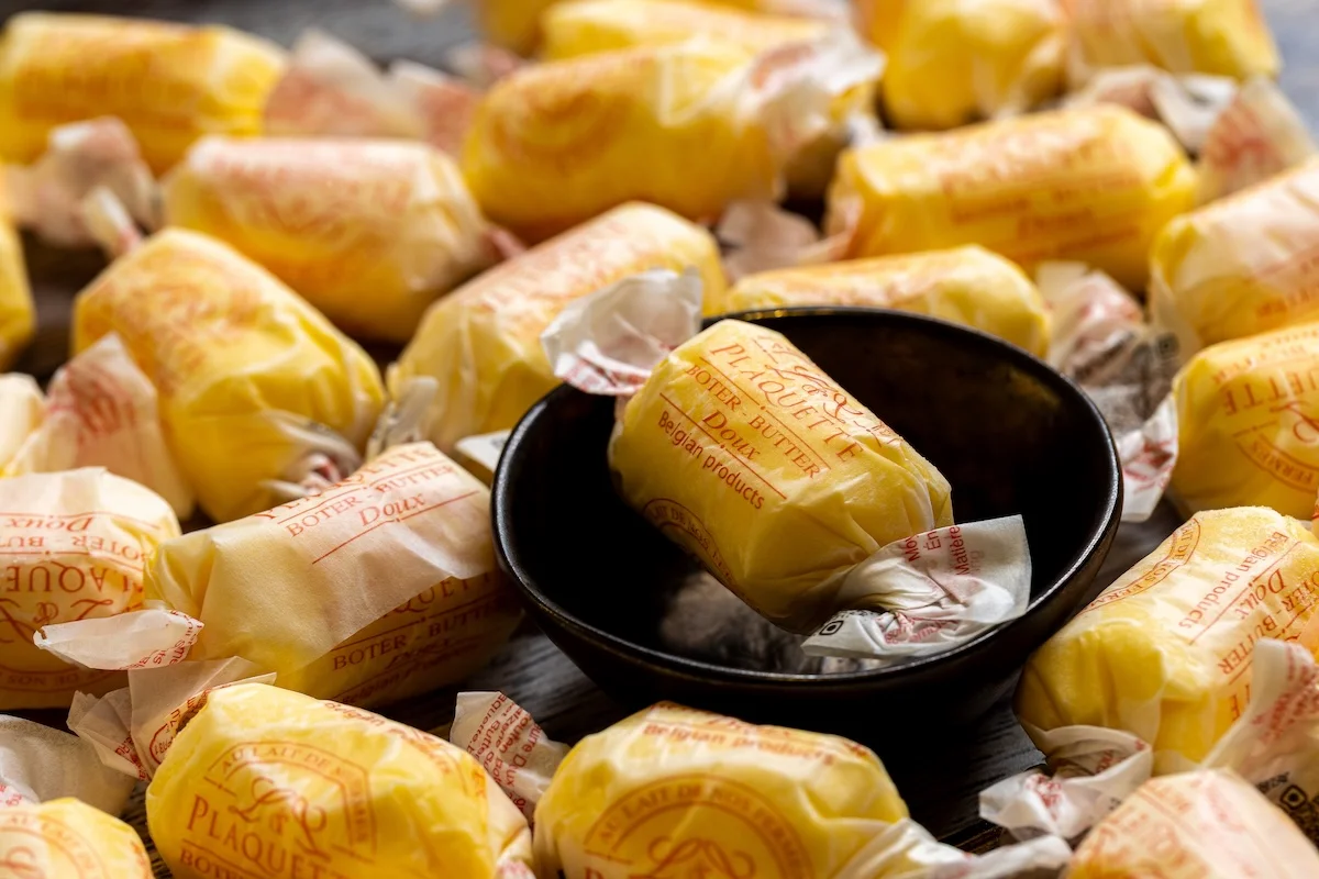 Deze met perkament verpakte Roomboter Toffee’s uit de Ardennen zijn geheel uniek en milieubewust met een ambachtelijke uitstraling. De ‘toffee’s’ zijn verpakt in geheel plasticvrij, plantaardig perkamentpapier. Ze worden handmatig verpakt met hulp van mensen met een handicap of afstand tot de arbeidsmarkt.